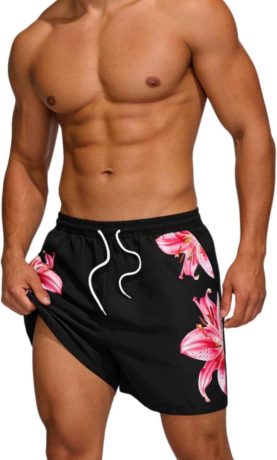 SEGT Men's Tropical Print Hawaiian Shorts Color Block Summer Beach Shorts with Pockets