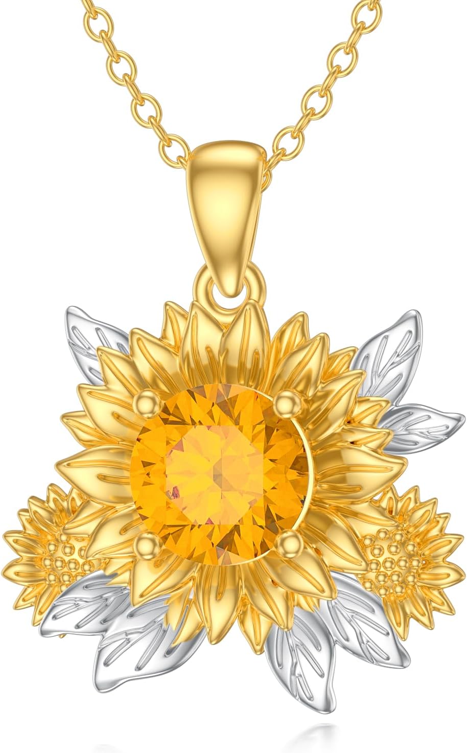 Natural Citrine Sunflower Necklace 925 Sterling Silver 18K Gold Plated Sunflower Pendant Jewelry Gift for Women