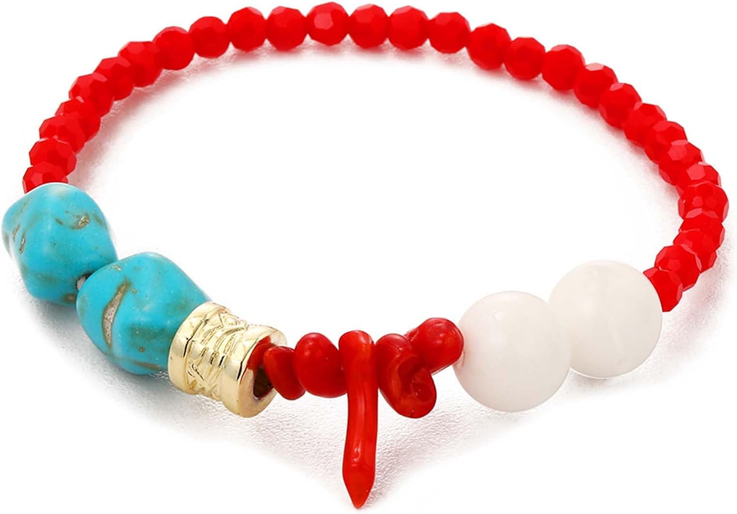 HETICA Irregular Turquoise Bracelet for Women Red Crystal Stretch Bracelets Jewelry