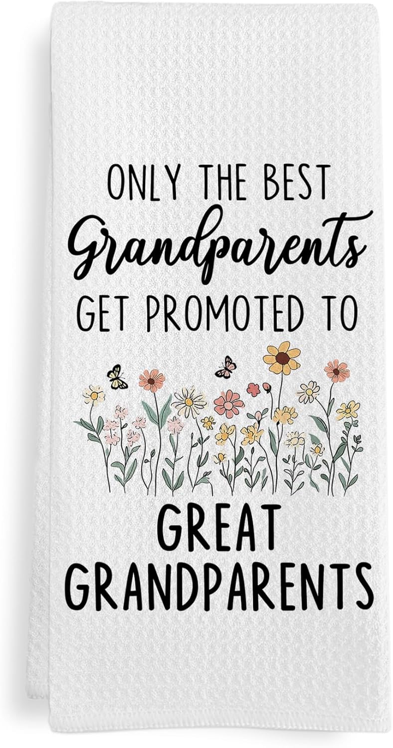 Promoted to Great Grandparents Gifts Kitchen Towels, Gifts for Grandparents Dish Tea Towels from Grandkids, Baby Pregnancy Announcement Grandparent Hand Towel for Kitchen Bathroom, 16x24 Inch
