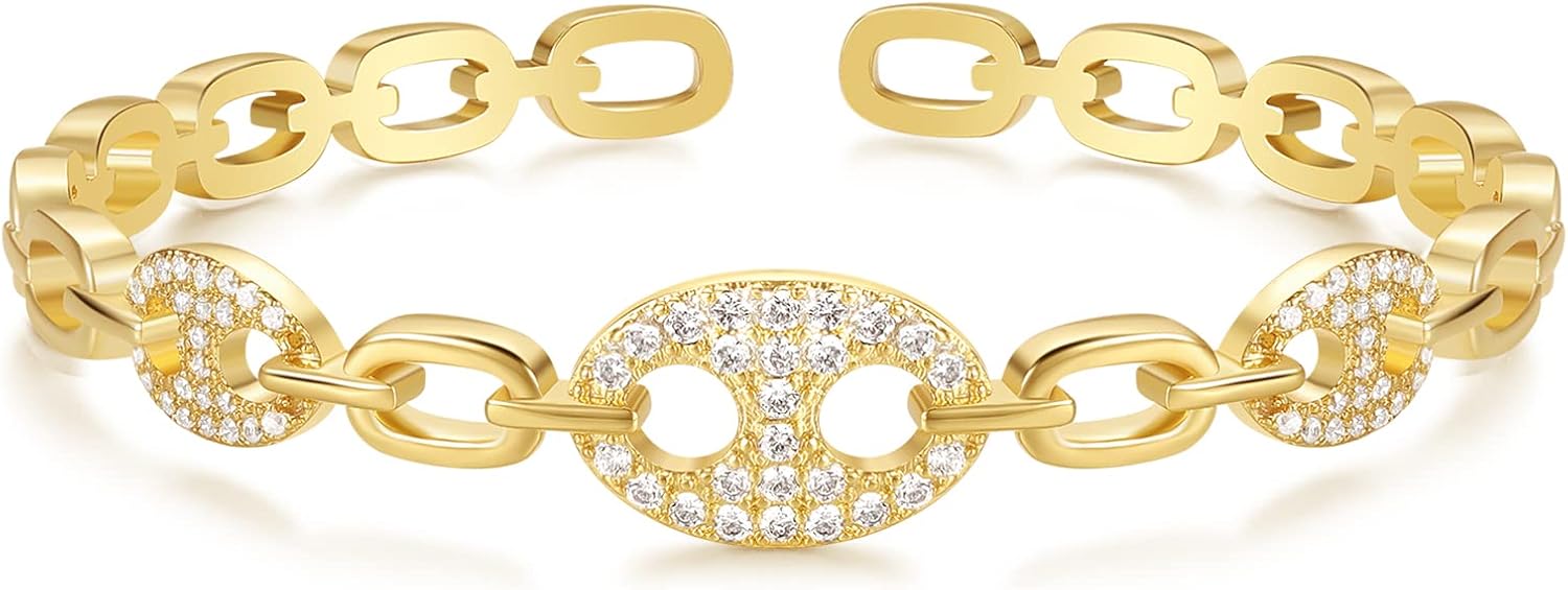 KissYan Gold Cuff Bangle Bracelets for Women, 14K Gold Plated Adjustable Open Cuff Bracelet Flat Hollow Butterfly Cubic Zirconia Gift