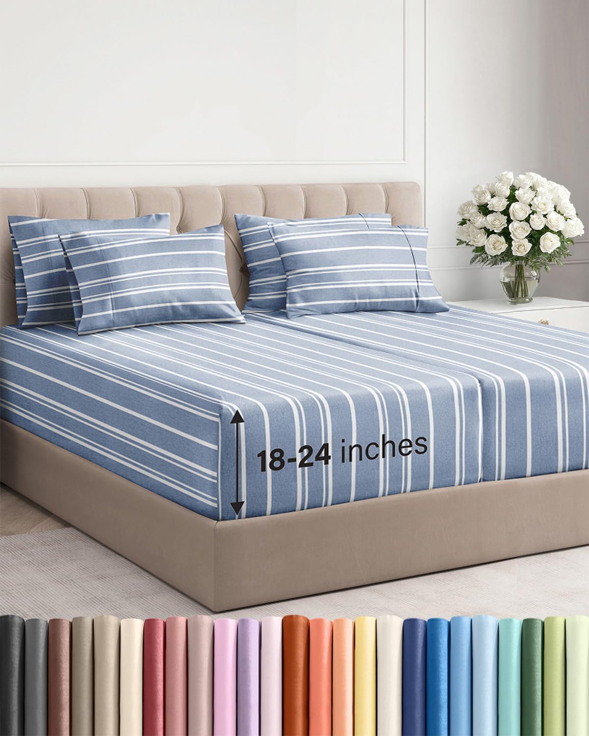 - 7 PIECE SHEET SET: This bed sheet set comes with 4 pillowcases total. The pillowcases feature secure enclosure designs. This bedding set is crafted to fit your extra thick mattress perfectly, giving you a soft, cozy, and breathable sleep experience for men, women, teens, and kids.
