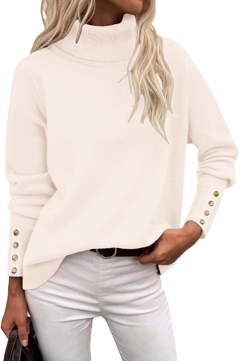 Rapbin Turtleneck Sweaters for Women 2026 Fall Winter Long Sleeve Knit Pullover High Low Hem Sweater with Metal Buttons