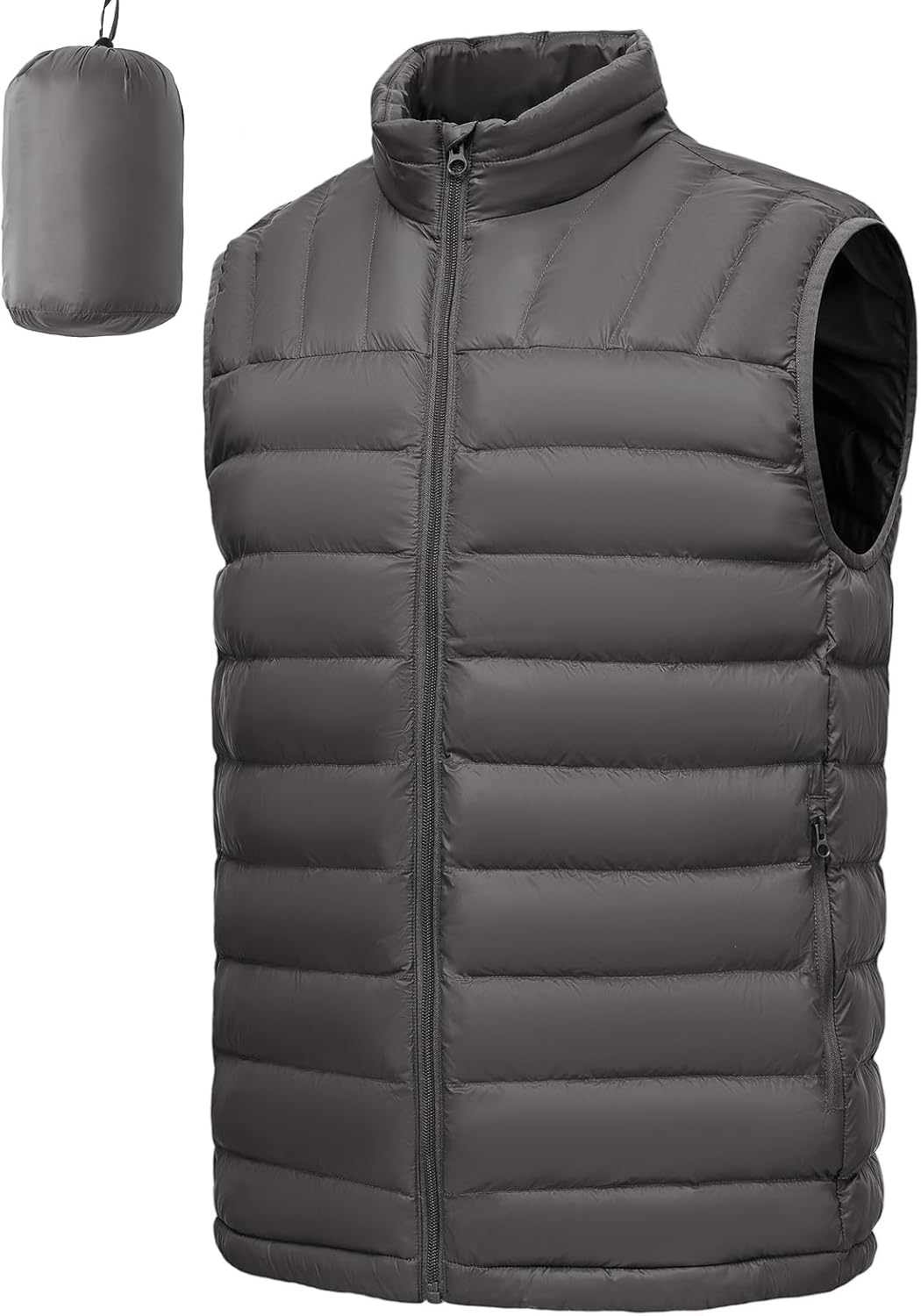 BGOWATU Men's Lightweight Packable Water-Repellent Puffer Vest Sleeveless Warm Jacket for Golf Hiking Casual Travel