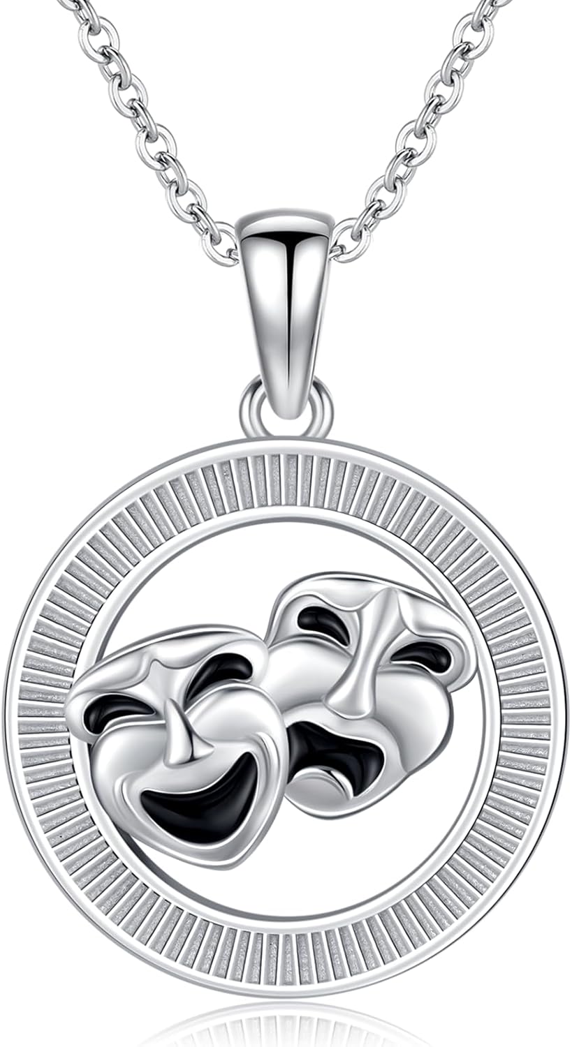 Comedy Tragedy Masks Necklace 925 Sterling Silver Masks for Drama Theater Pendant Jewelry Theatre Gifts for Women