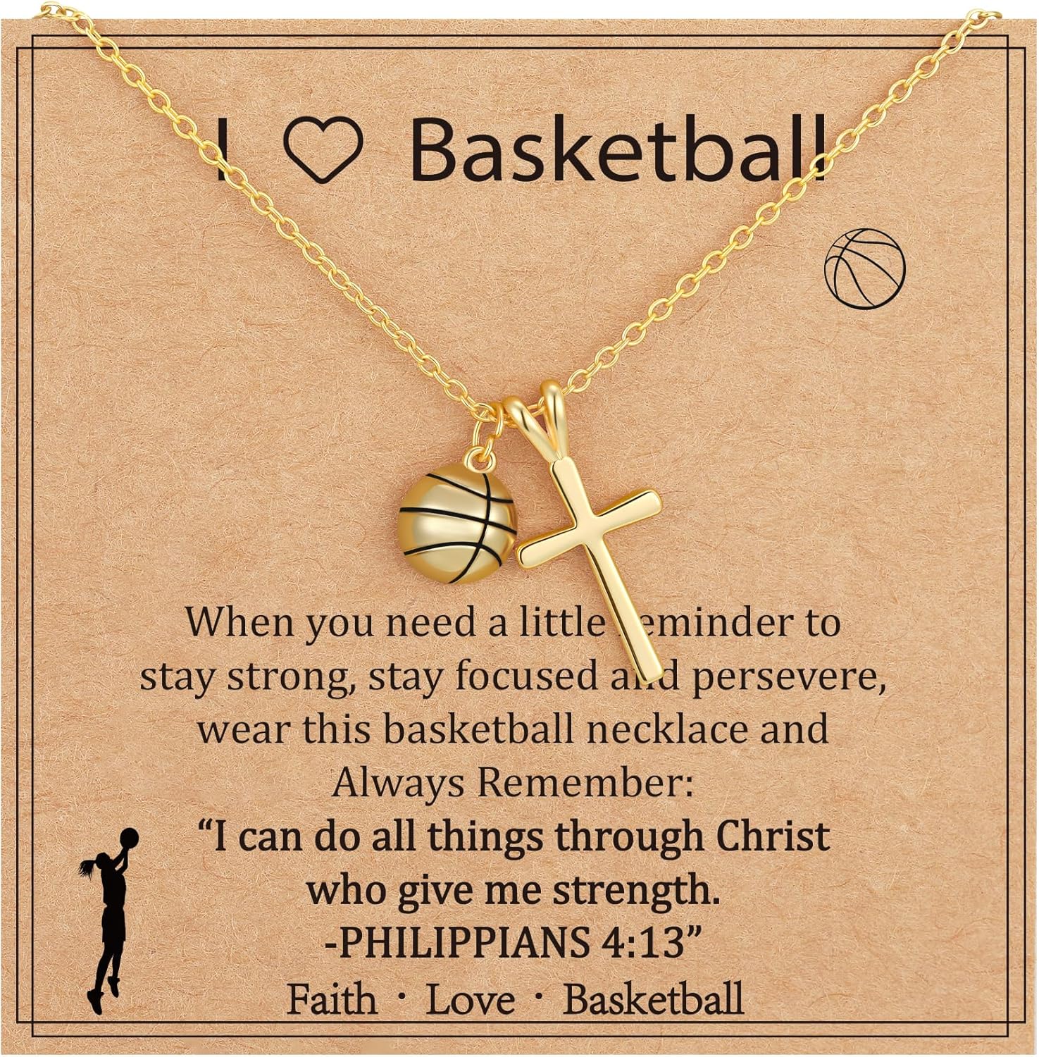 Softball/Volleyball/Basketball/Soccer Necklace for Teen Girls Women, Gold/Silver Cross Pendant Sport Accessories Valentines Christian Religious Jewelry Gifts for Teens Kids Lovers