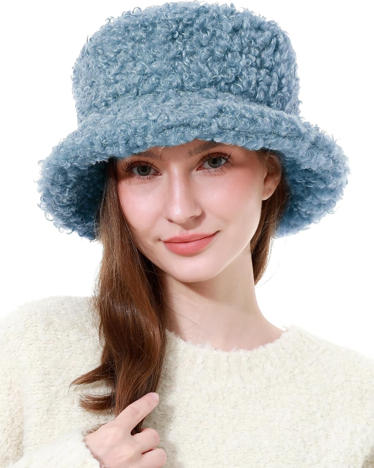 LA CARRIE Women Winter Faux Fur Bucket Hat Plush Fuzzy Furry Warm Fisherman Cap