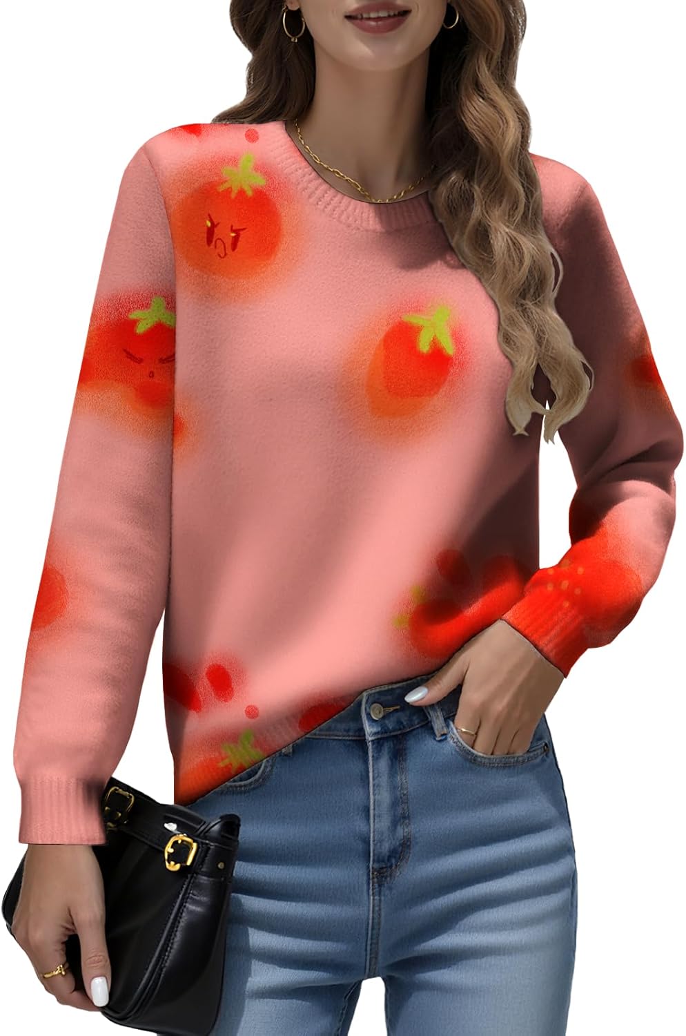 LIZALIG Womens Long Sleeve Print Pullover Sweater Round Neck Relaxed Fit Soft Comfortable Chic Fall Fashion Trendy