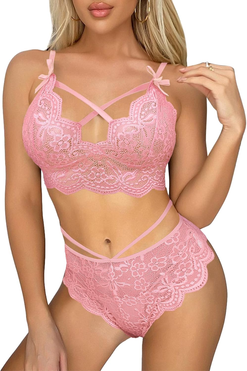 Lilosy Sexy Strappy Women Floral Lace High Waist Pajamas Lingerie Set