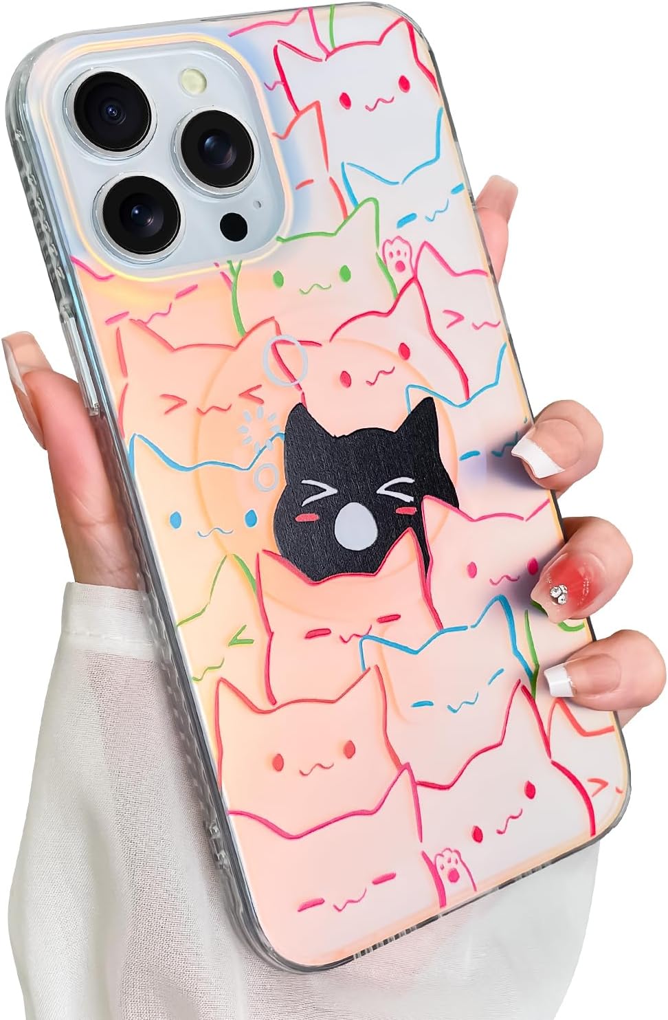 ![Cute Case for iPhone 13 Pro Max Case for Women Girls Boys [ Compatible with Magsafe ] Iridescent and Black Cats Cat Pattern Design, Kawaii Colorful Animal Soft Bumper Protective Phone Cover - Image 6](https://m.media-amazon.com/images/I/71fNFFoPUnL._AC_SL1500_.jpg)