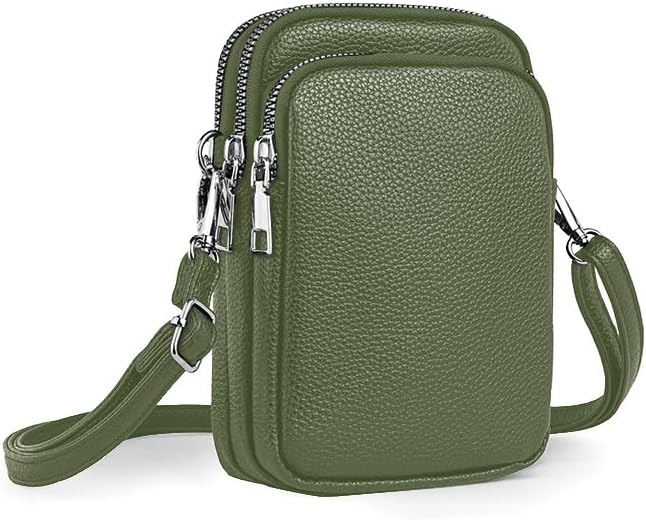 Cell Phone Purse Small Crossbody Bag for Women Men Leather Mini Shoulder Bag Wallet with Card Holder Slot Pouch Neck Strap for All Smartphones iPhone 17 Pro Max 16 Plus 15 14 13 12 up to 7.5" Green