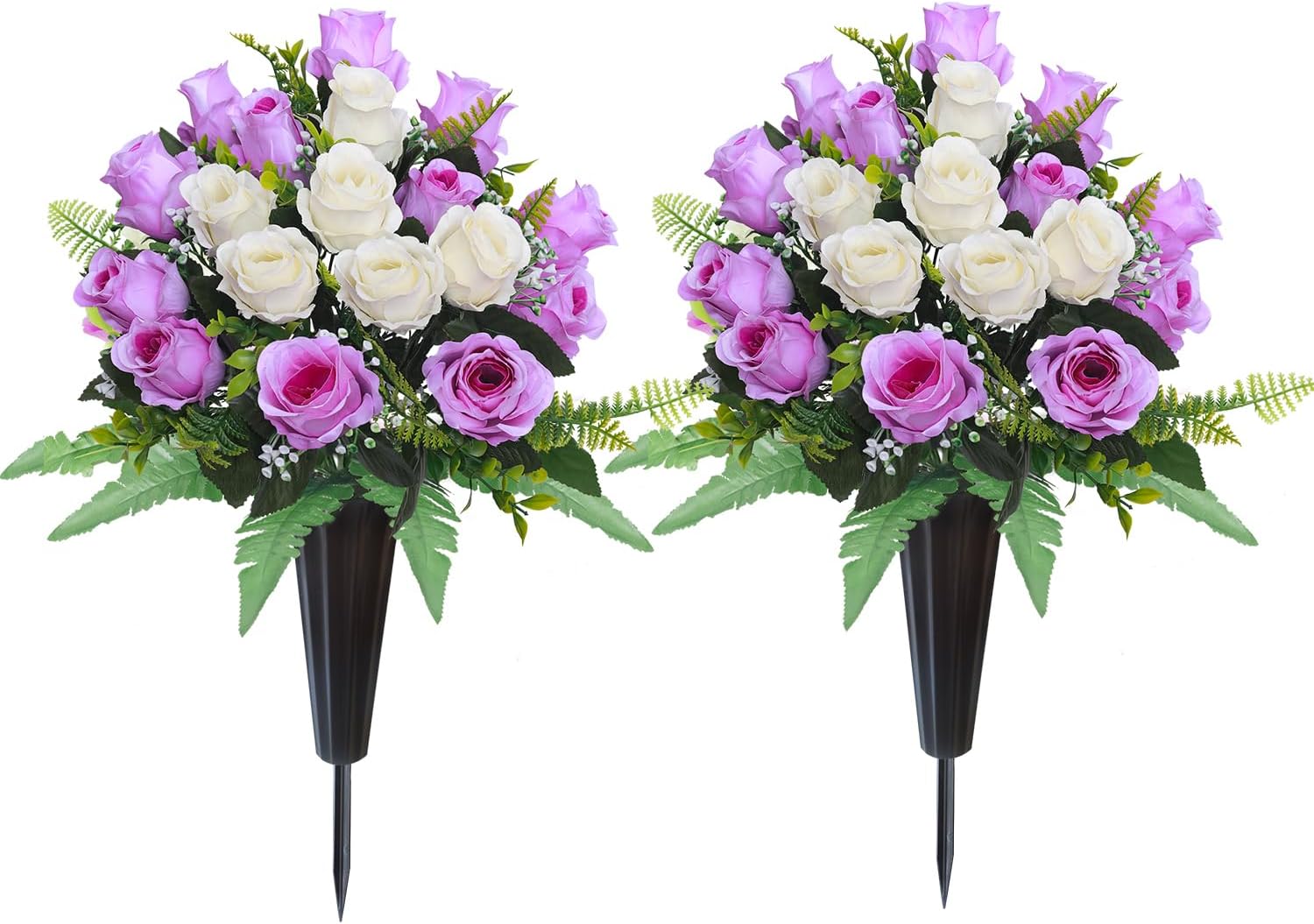- Package Inclued:This cemetery flower set includes 2 bouquet and 2 long-stem vases;include foam plastic,which can resist bad rainstorm and keep the flowers stand upright;ensuring the long lasting beauty of the grave decorations for cemetery