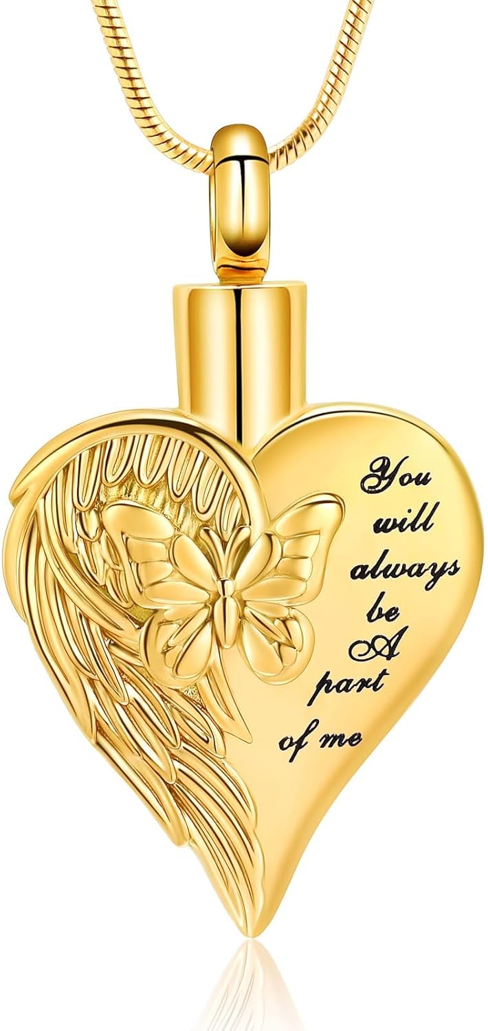 Imrsanl Cremation Jewelry for Ashes Butterfly Heart Urn Necklaces for Women Keepsake Memorial Necklace Pendent for Human Ashes