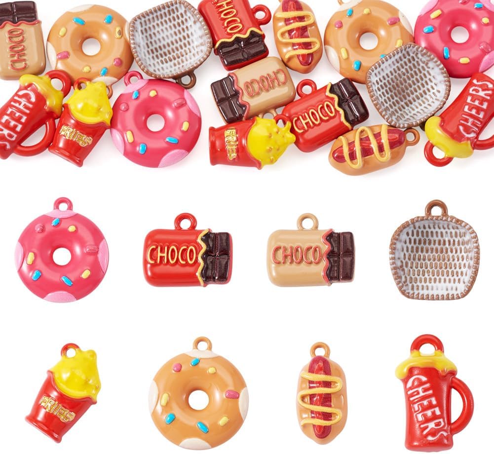 Beadthoven 16Pcs Food Dangle Charms Chocolate Donut Basket Beer Glasses Alloy Pendants 3D Cute Sweet Food Bead Metal Pendants for Jewelry Making DIY Bracelet Earring Necklace