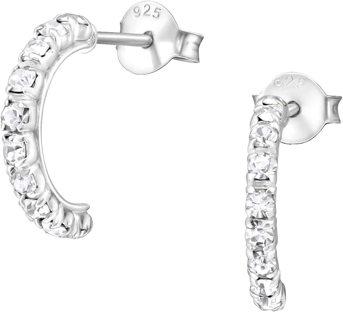 925 Sterling Silver Crystal Lined Semi Hoop Earrings, Sold as a Pair