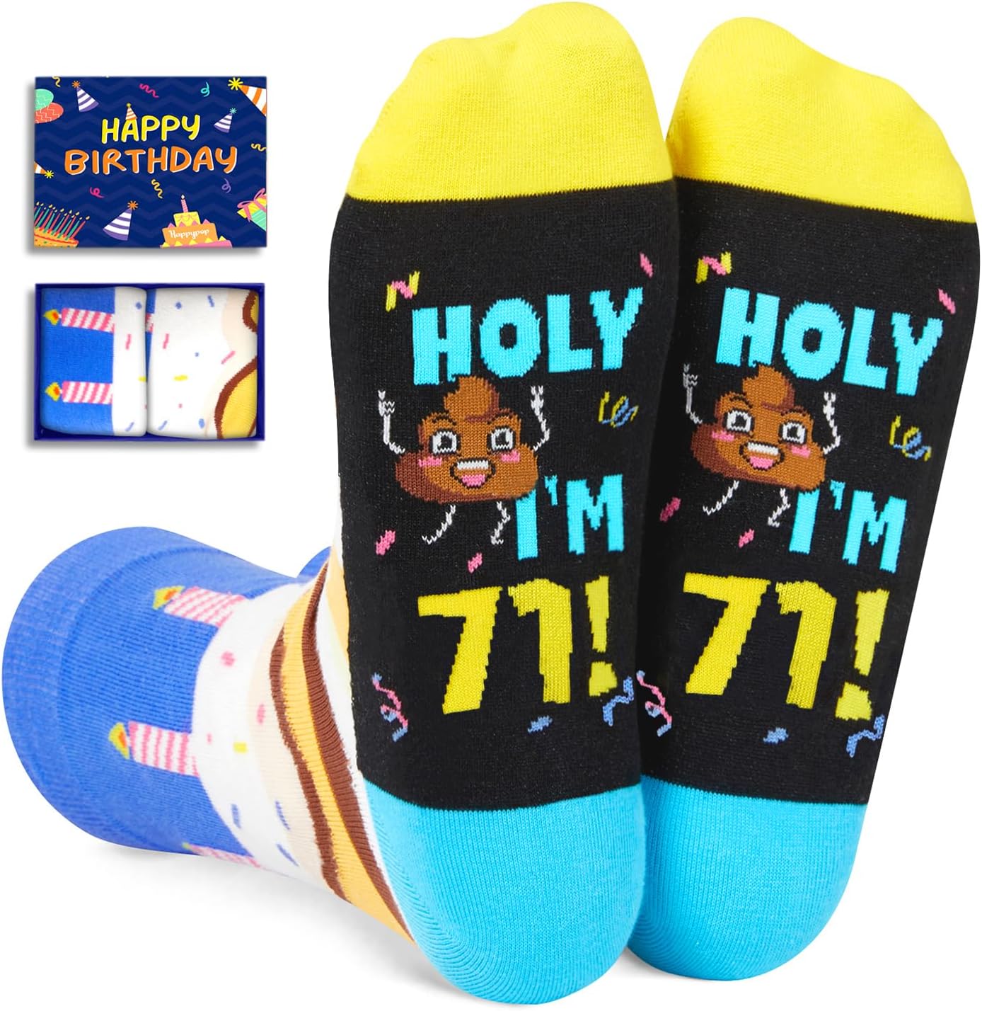 HAPPYPOP Birthday Gift for Men Women - Birthday Socks for 75 80 Year Old Male and Female