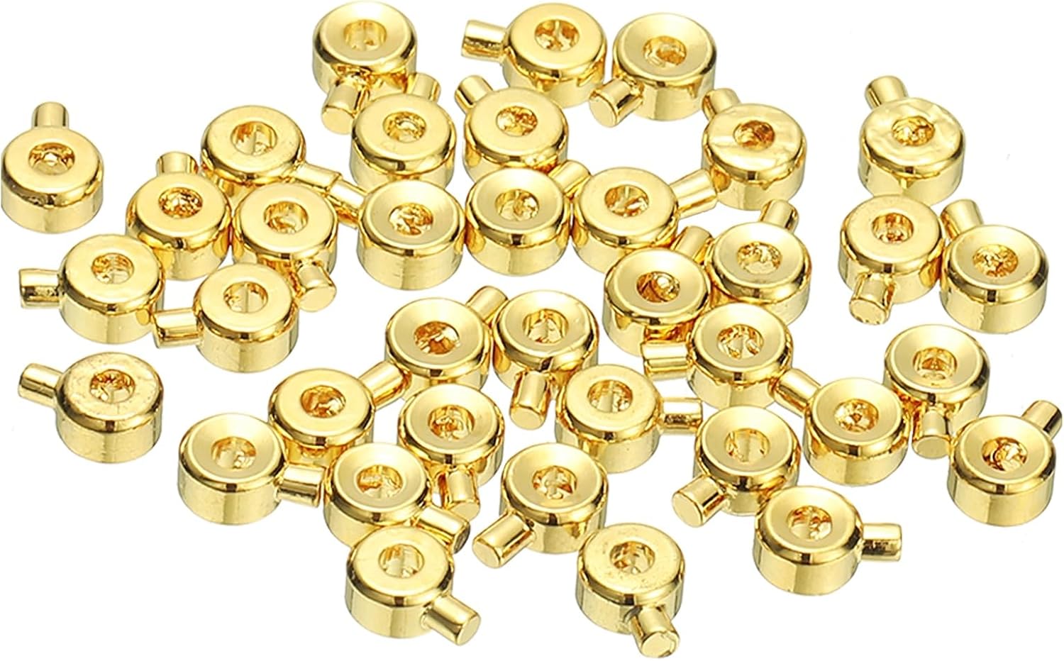 uxcell 40 Pcs Crimp Beads, 3.2mm Copper Spacer Beads Connectors Loose Beading Findings End Stopper for Earrings Necklaces Bracelets Pendant DIY Crafts, Gold
