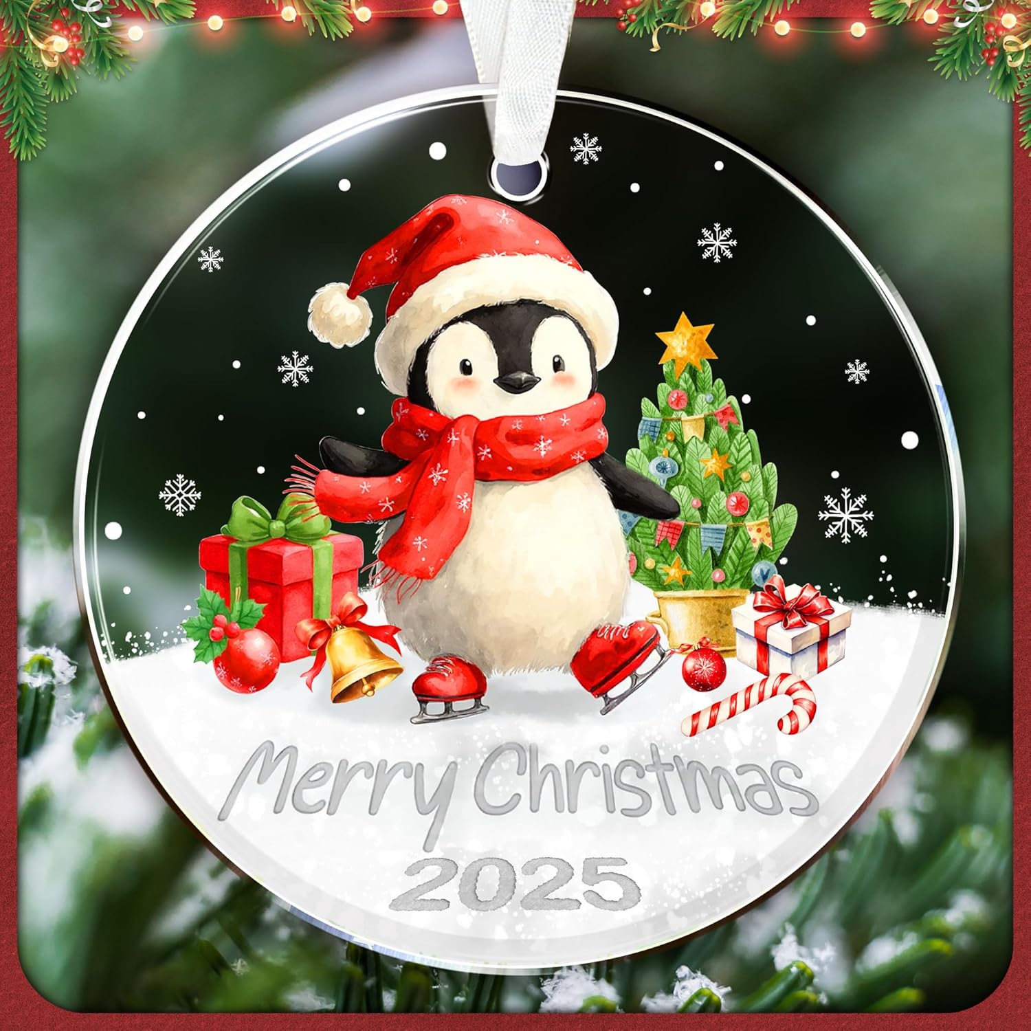 Penguin Christmas Ornament 2025 - Cute Penguin Ornaments for Christmas Tree - Penguins Gifts for Women, Men, and Animal Lovers - Adorable Holiday Penguins Decoration - Acrylic Ornament