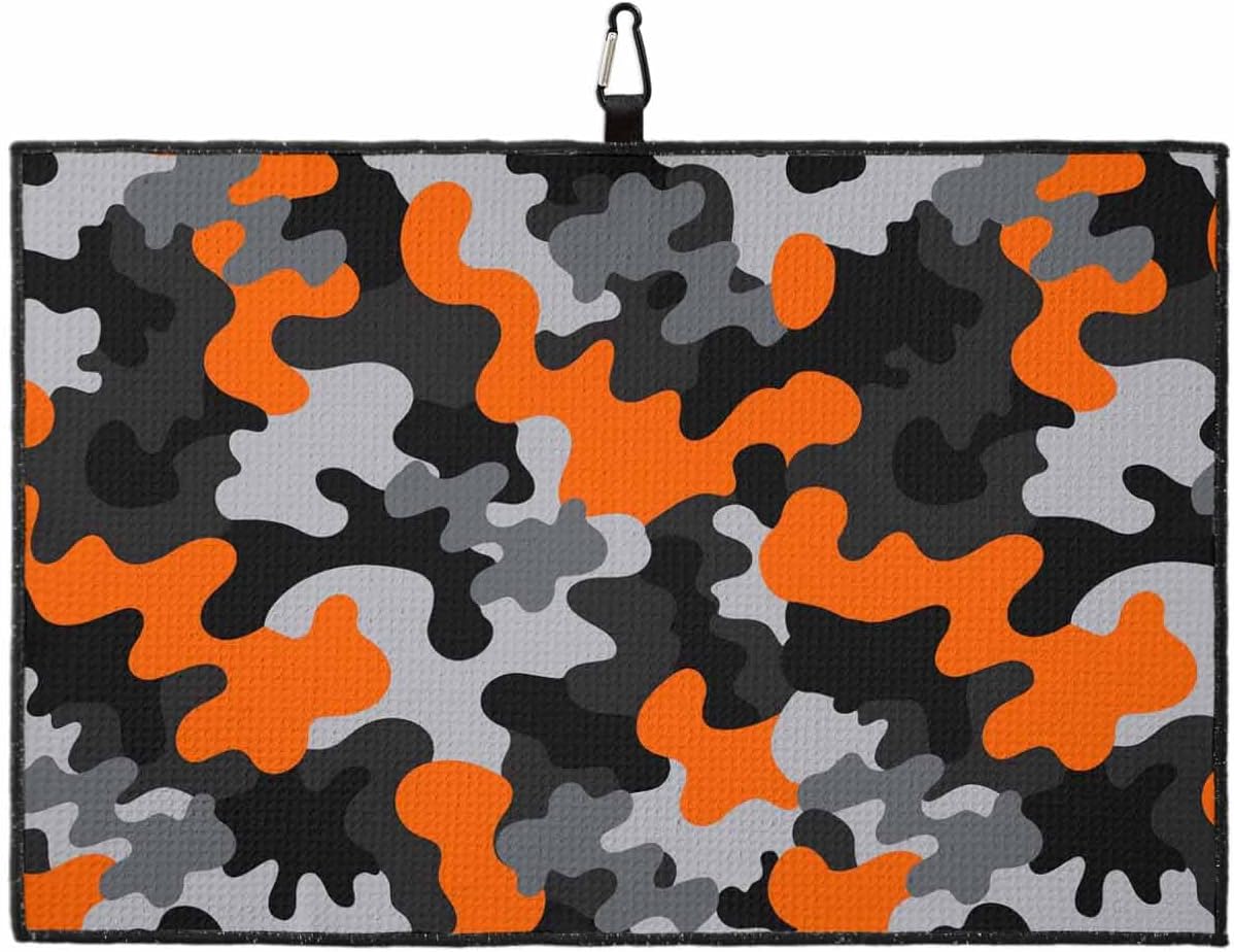 SEVENBABU Golf Towels for Golf Bags with Clip, Funny Microfiber Waffle Pattern Golf Towel, Grey and Orange Camouflage Print Golf Accessories for Men and Women Gifts 24x16 inch
