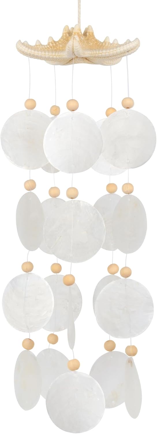 - 【Artistry in Every Detail】Capiz wind chimes length 22 inch, top starfish is 3.93 inch, Our Round Capiz shells each securely strung together, showcase meticulous artistry. Their 2-inch round circle shells contribute to the overall aesthetic, creating a harmonious blend of form and function.