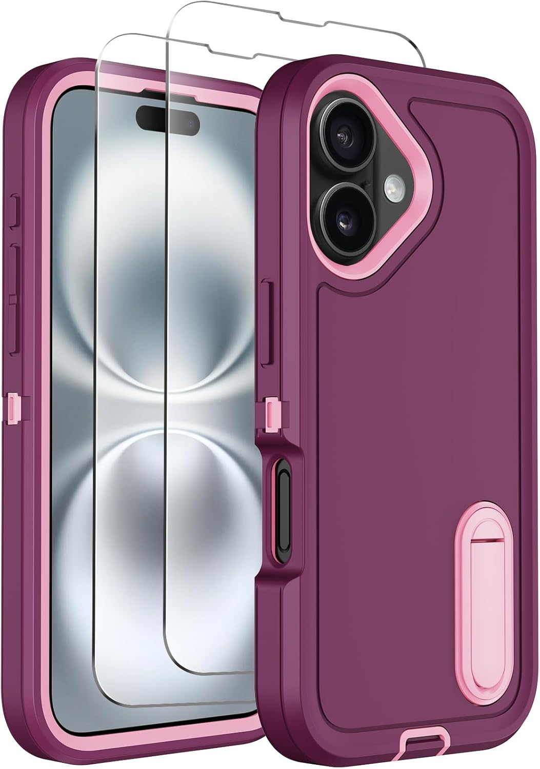 ![for iPhone 16 Plus Case with Built-in Invisible Kickstand, [2*Screen Protector] Military-Grade Protection Shockproof Protective Cover, Hard Back Stand Phone Case for iPhone 16 Plus (Wine)](https://m.media-amazon.com/images/I/619aS2TNPwL._AC_SL1500_.jpg)