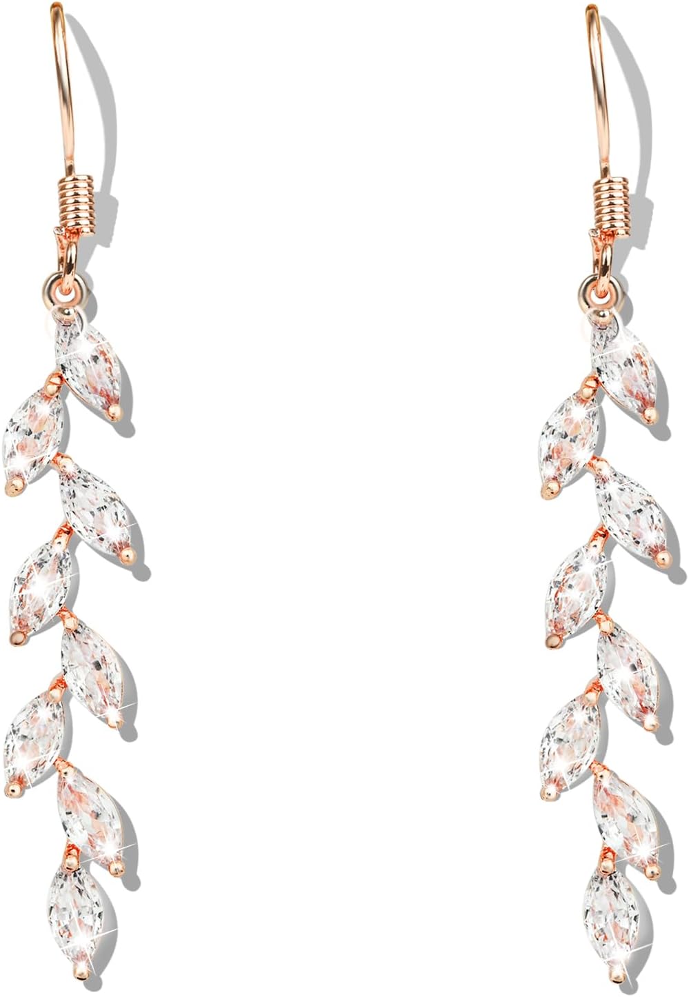Handmade Leaf Earrings Crystal Wedding Dangle Earrings Brides Bridesmaid Gift for Women