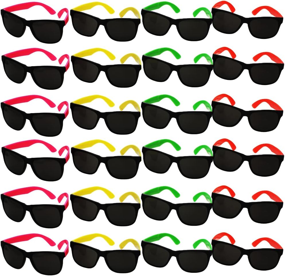 Funny Party Hats Sunglasses in Bulk - Neon Party Sunglasses - 24 Pack - Party Favors - Neon Party Supplies