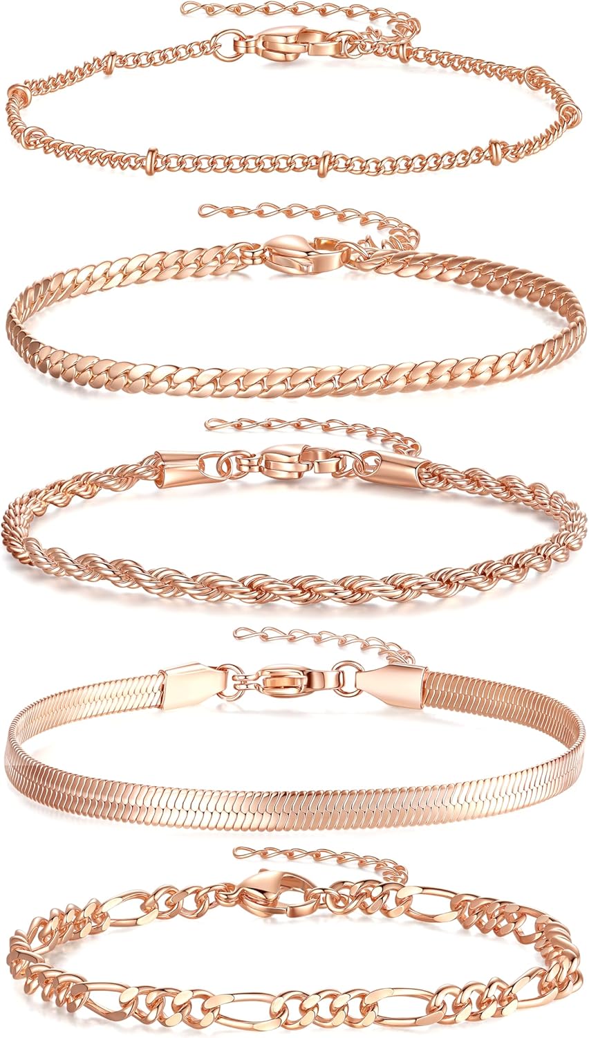 Gold Bracelets for Women, Dainty 14K Gold Plated Stackable Bracelet Stack for Women Trendy,Thin Adjustable Bracelets Paperclip Chain Cuban Link Layered Jewelry Gifts for Womens 7+2 In
