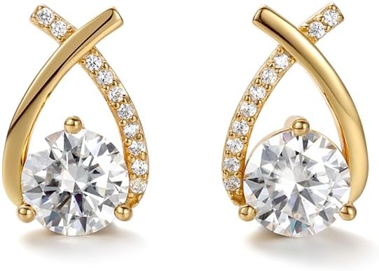 2ct Moissanite Stud Earrings for Women, Earrings in Crossed Asymmetrical, Mermaid Tail Earrings, D Color VVS1 18K Gold Plated 925 Sterling Silver Hypoallergenic, Round Cut Lab Created Diamond for Gift