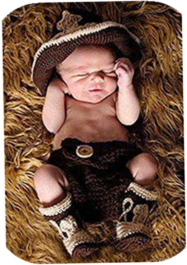 Vemonllas Newborn Photography Props Outfits Cowboy Bonnet Hat,Pants & Boots Baby Photo Prop Boy Girl Coustme