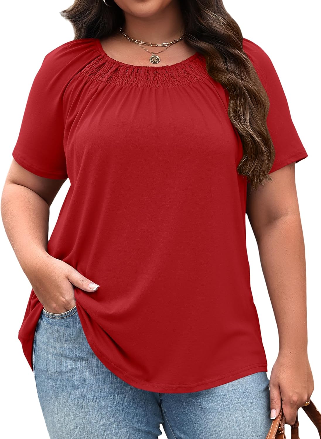 Micoson Womens Plus Size Tops Short Sleeve Shirts Crewneck Pleated Blouses Dressy Casual Fashion Tunic Top (1X-5X)