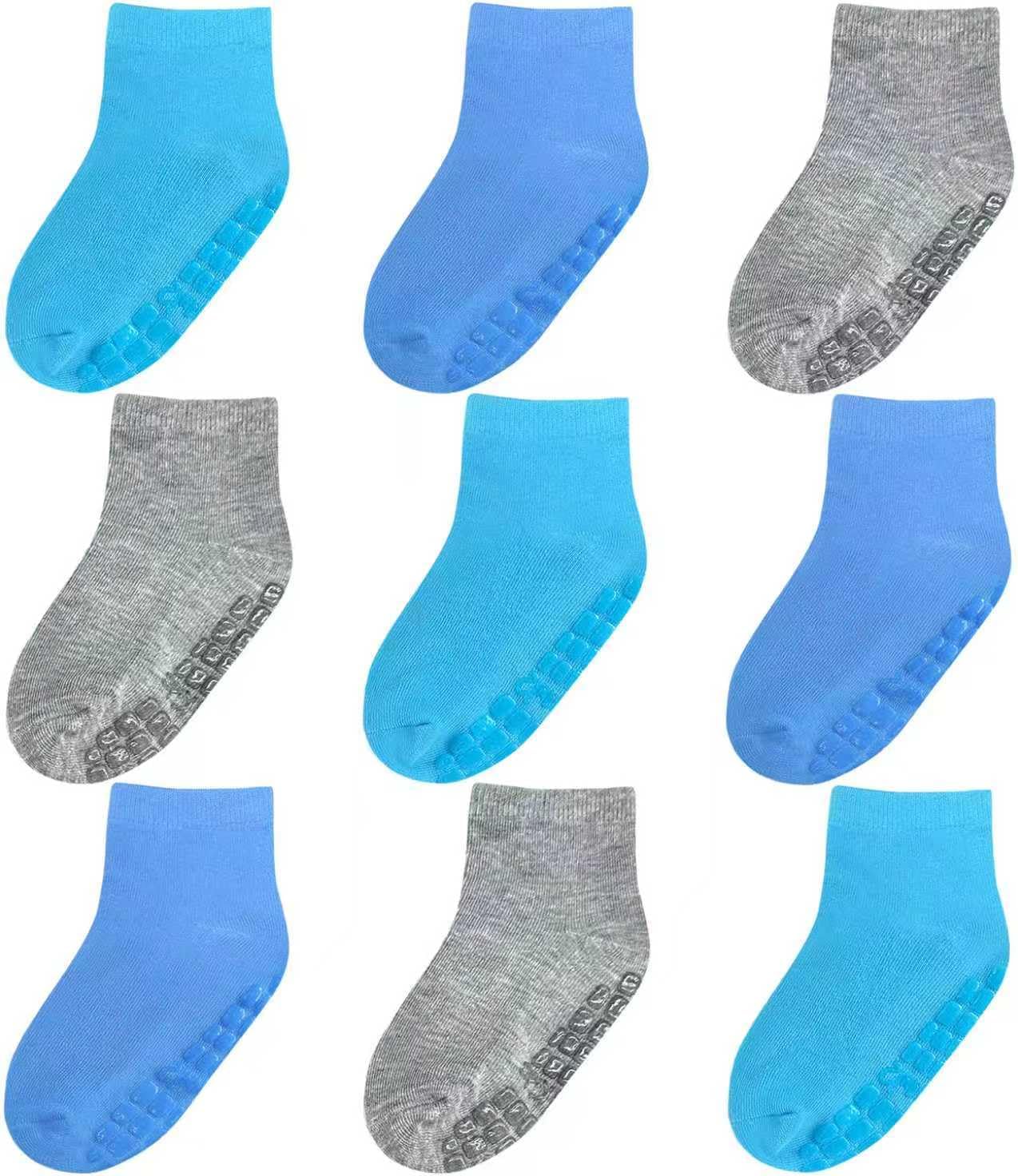 Baby Mid-Crew Socks with Grips (9 Pairs) for 0-7 Years Old Toddler Boy Girl Kids