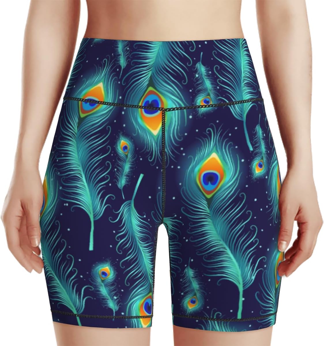 Tropical Leave Flower Butterfly Women's High Waist Yoga Shorts Biker Shorts Workout Athletic Running Hiking Gym