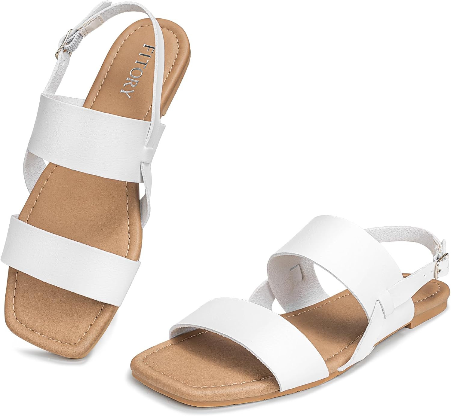 FITORY Women's Flat Sandals Fashionable Square Open Toe Adjustable Buckle Slippers Summer Size 6-11