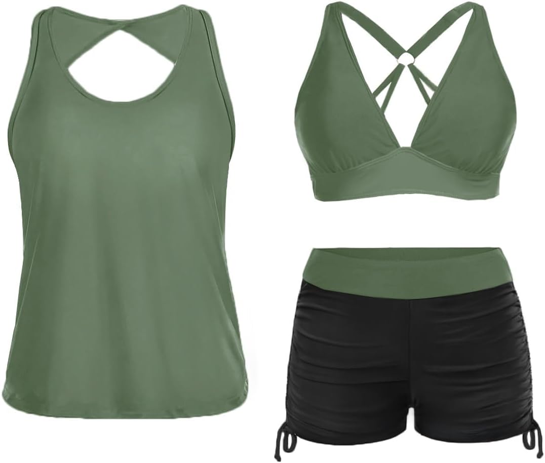 Yonique 3 Piece Tankini Swimsuits for Women Swim Tank Top Bathing Suits with Boy Shorts and Bra Athletic Swimwear
