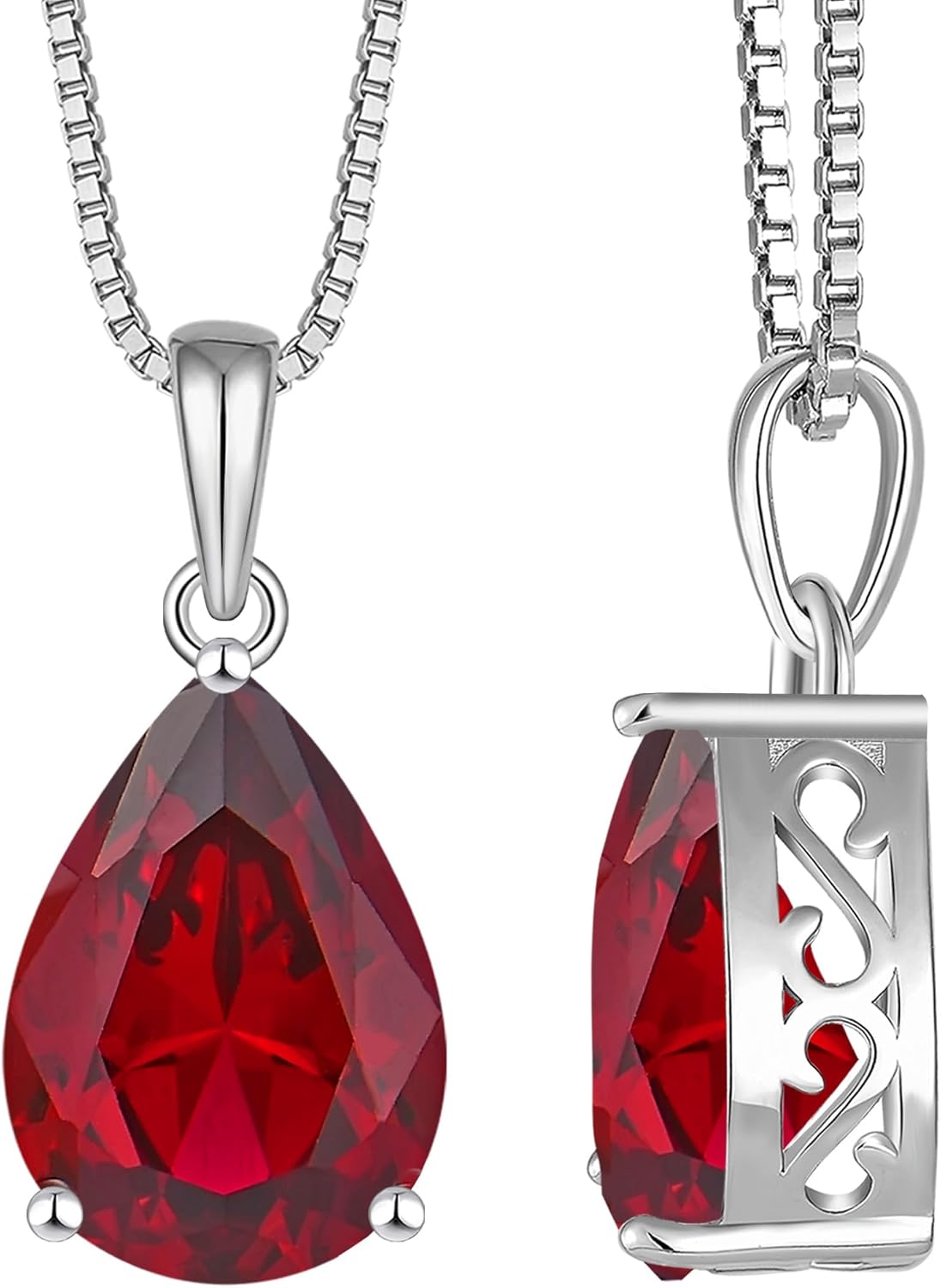 YL Teardrop Necklace 925 Sterling Silver Solitaire Pendant 10x14 MM Pear Cut Birthstone Filigree Jewelry for Women