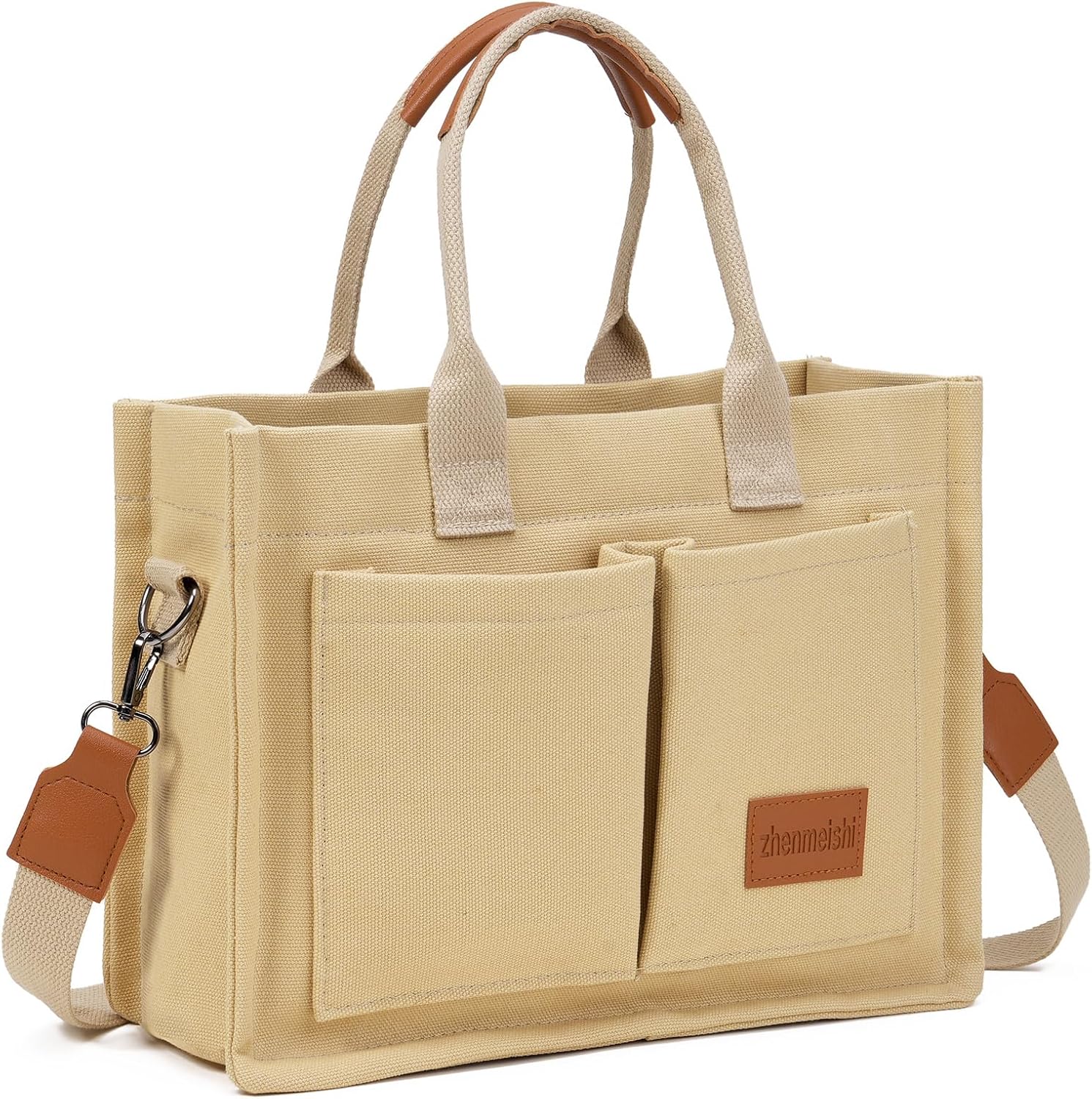 Small Tote Bags for Women Canvas Tote Bag with Zipper Satchel Crossbody Bag Work Travel Shoulder Handbags with Pockets