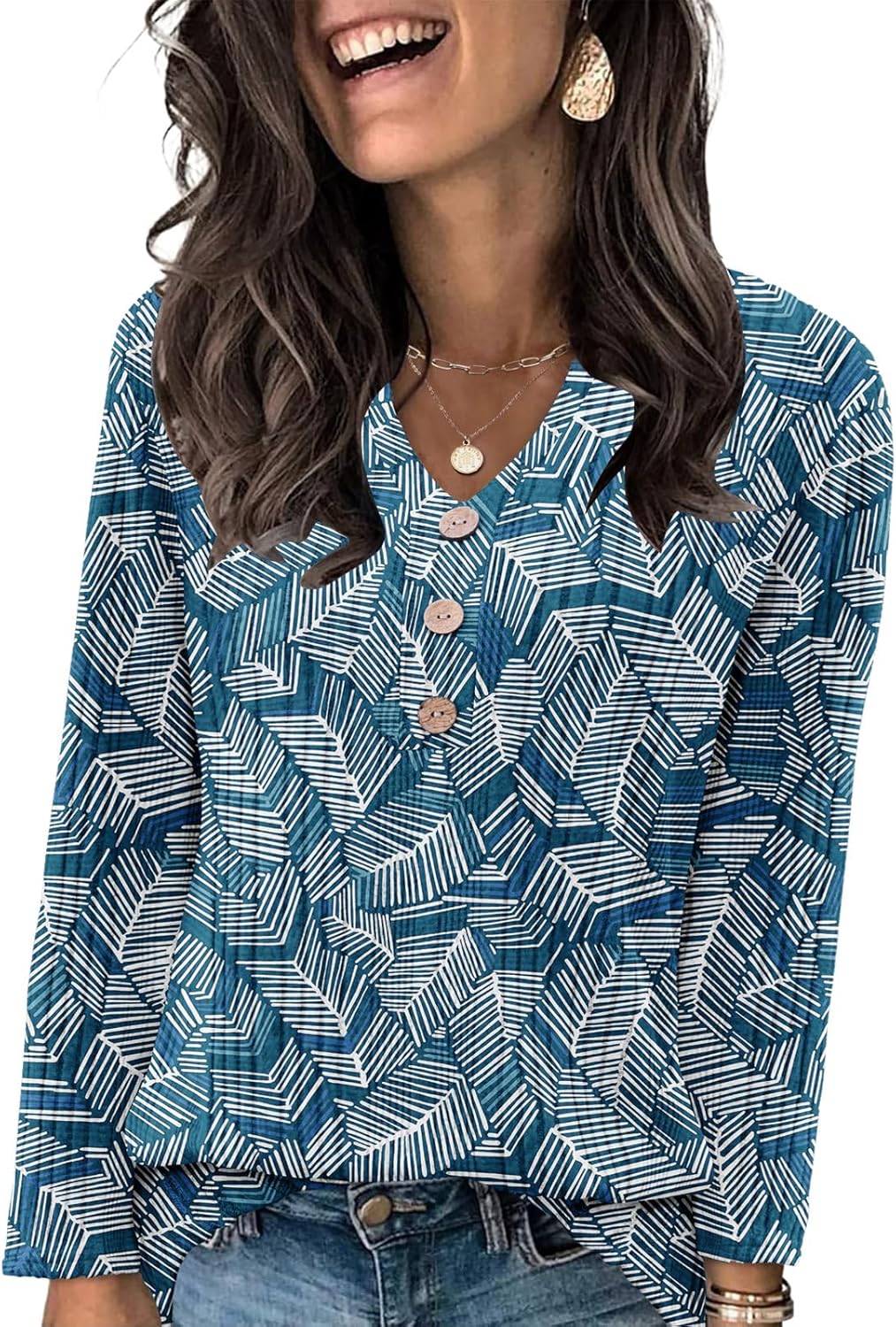 VUTRU Long Sleeve Top for Women Henley Shirts Tunic Sweater Knit Fall Casual V Neck Pullover Loose Fit Dressy with Leggings