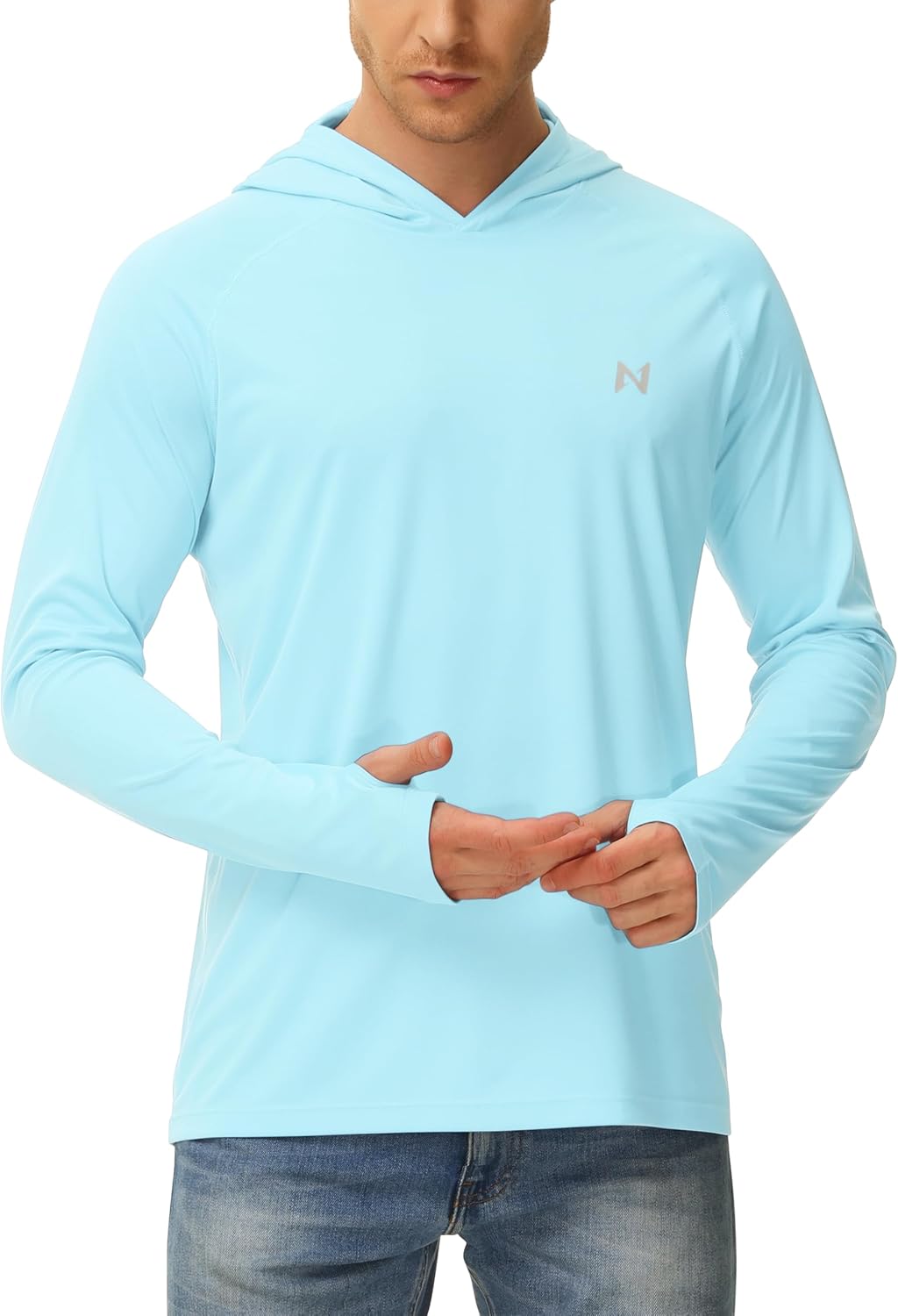 isnowood Sun Shirt UPF 50+ Men's Fishing Shirt Long Sleeve UV Protection Hoodie Rash Guard for Swimming Running Hiking Light