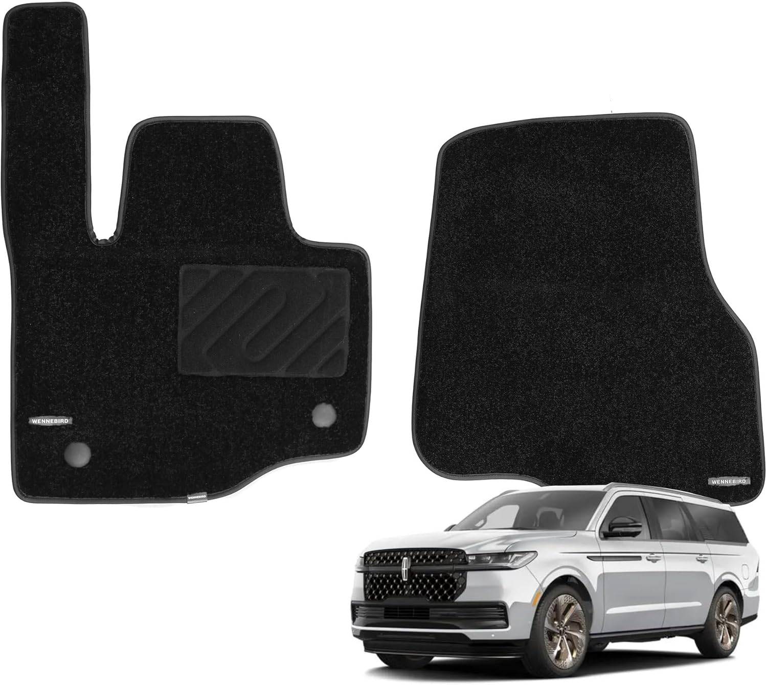WENNEBIRD Superior Carpet Front Row Floor Mats for 2018-2024 Lincoln Navigator/Navigator L, 0.6-Inch Ultra-Thick, Noise-Reducing, All-Weather Waterproof Anti-Slip – 2-Pc Set