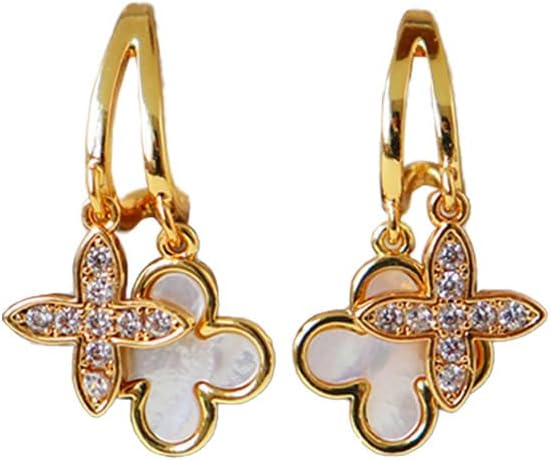 Four Leaf Clover Shell Zircon Inlaid Stud Earrings for Women, Fashionable Exquisite Retro Commen Luxury Versatile Silver Needle Earrings