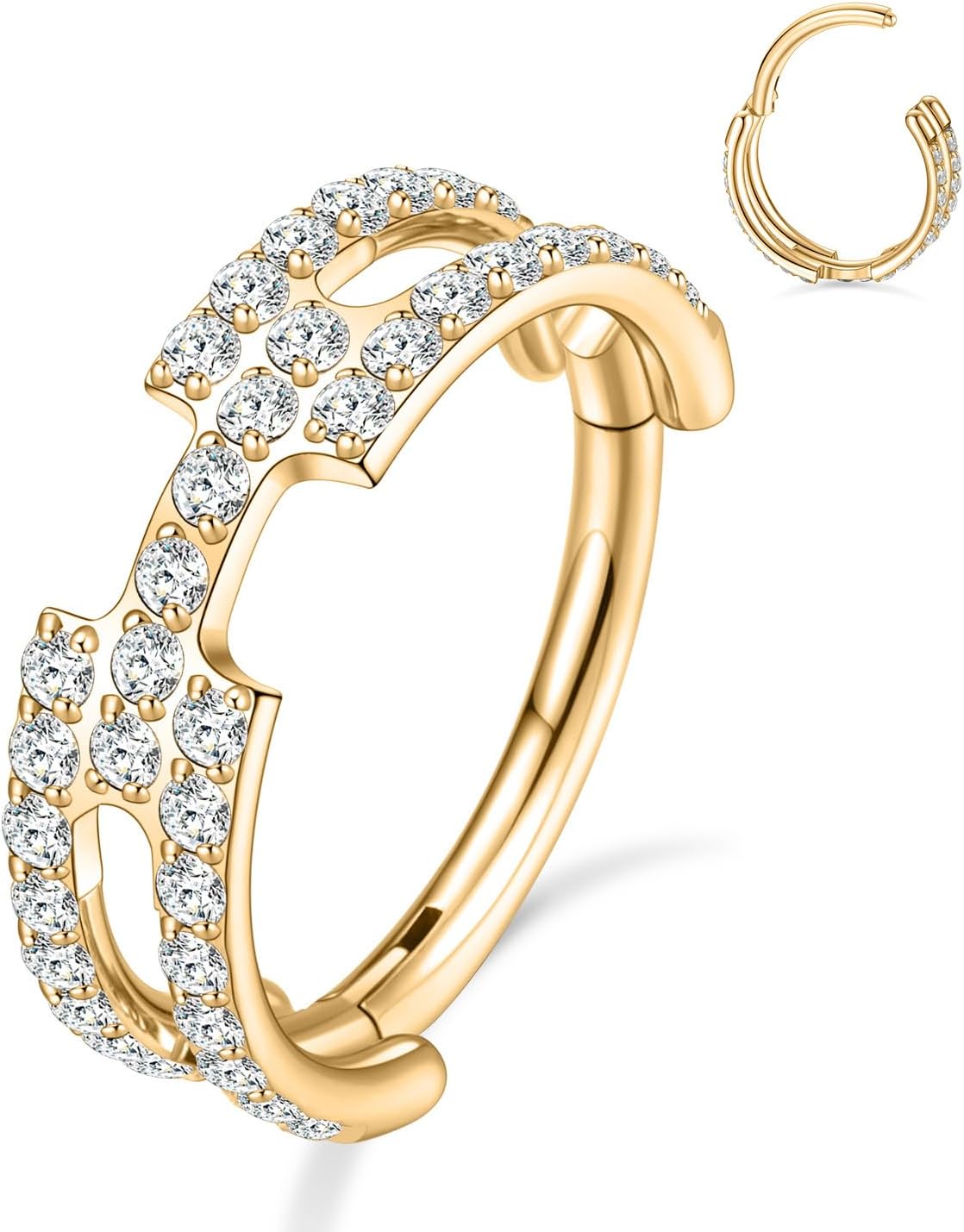 GAGABODY Seamless Nose Hoop Conch Piercing Jewelry Surgical Steel 16 Gauge Earring CZ Cartilage Earrings Hoops Hinged Nose Rings Helix Piercing
