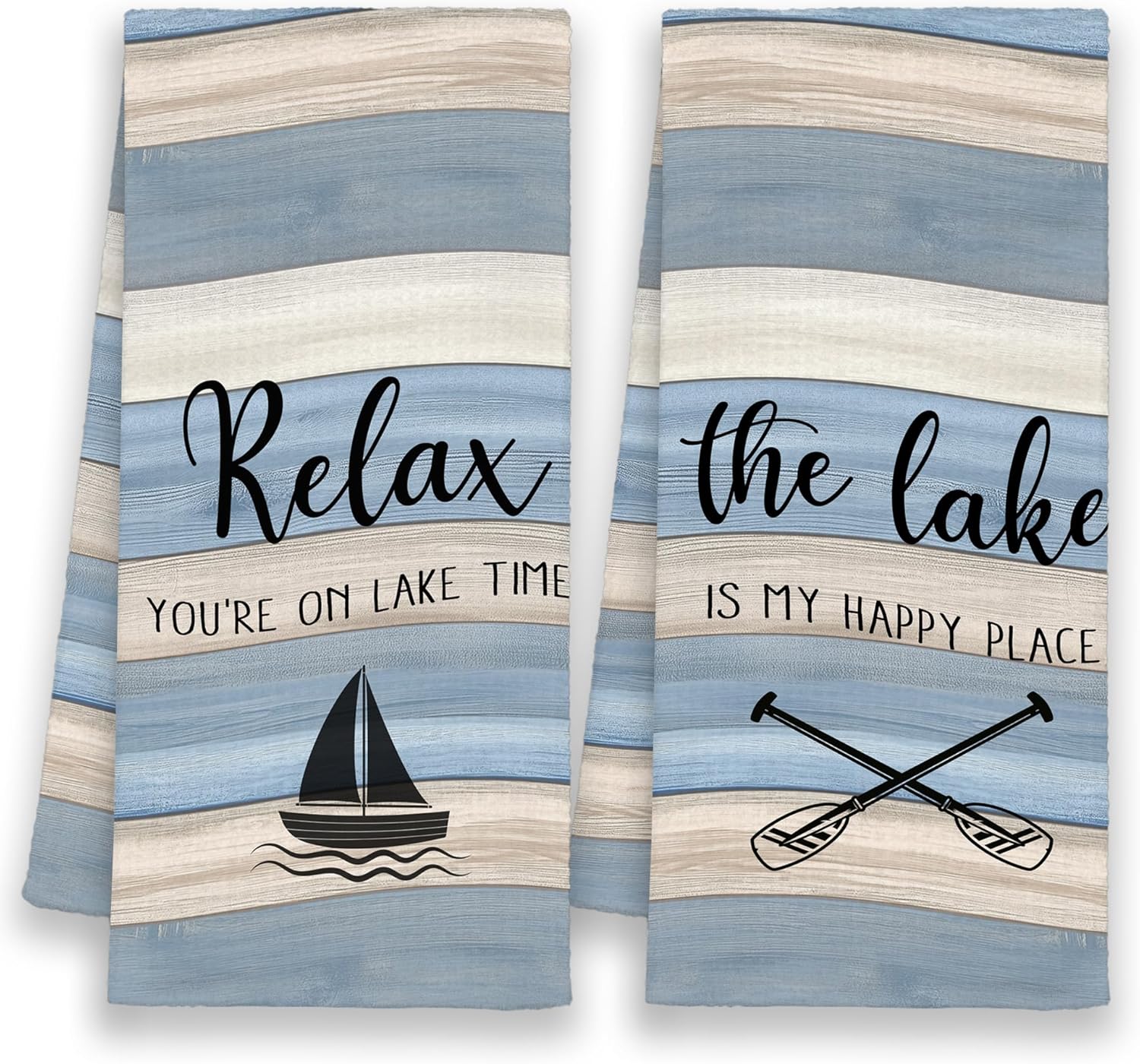 Lake Boat Kitchen Towels Gifts Set of 2, Funny Paddles Oars Hand Towels for Bathroom, Rustic Decorative Dish Towels Decor for Lake House 16x24in