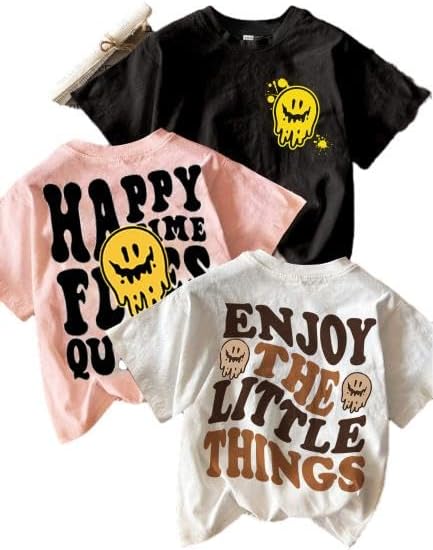 SHENHE Girl's 3 Piece Tee Shirts Set Short Sleeve Crew Neck Letter Graphic Print Summer Cute Tees