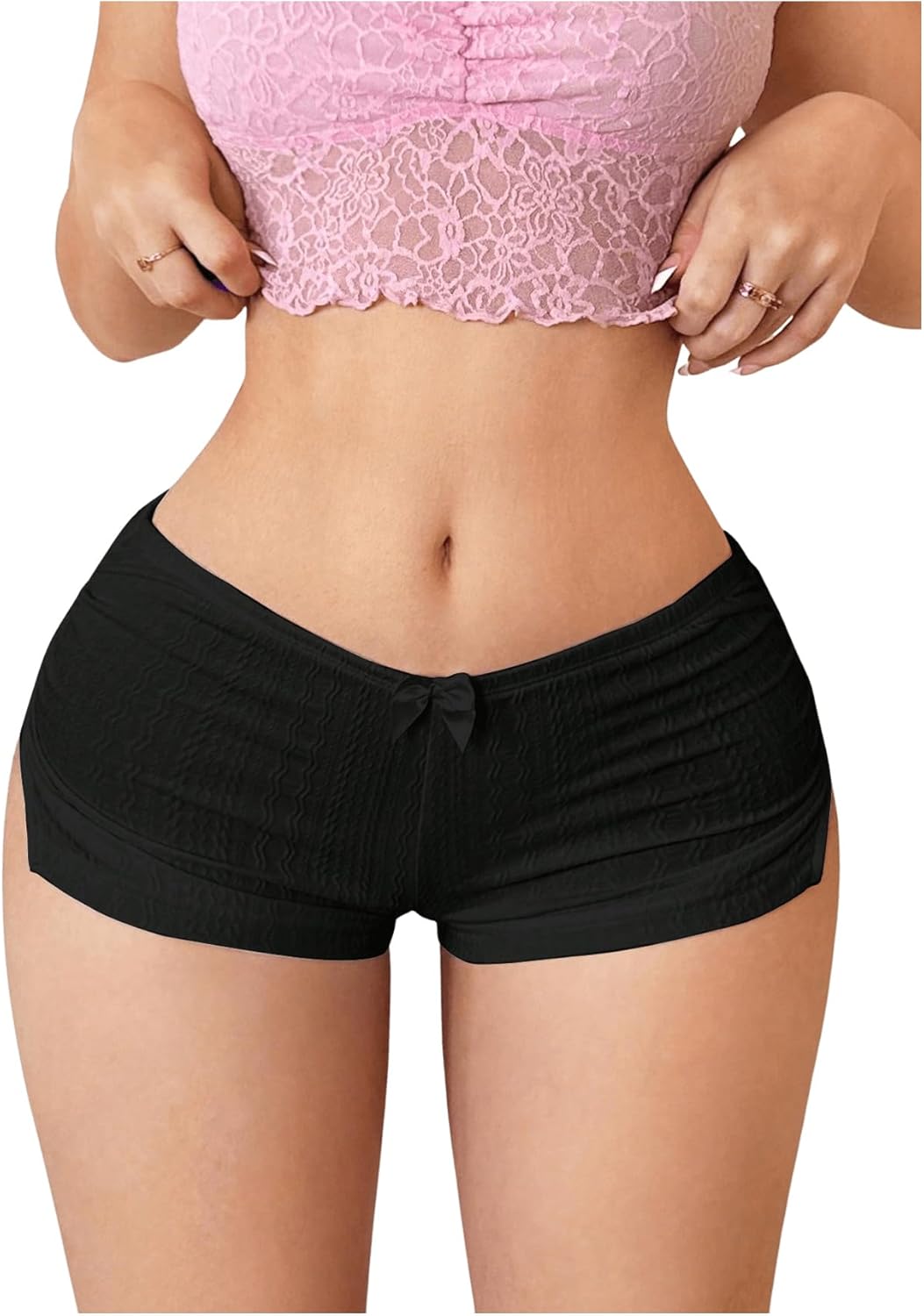 Women's Y2k Micro Shorts Sexy Bow Decor Low Waist Side Slit Booty Shorts Cute Lounge Sleepwear