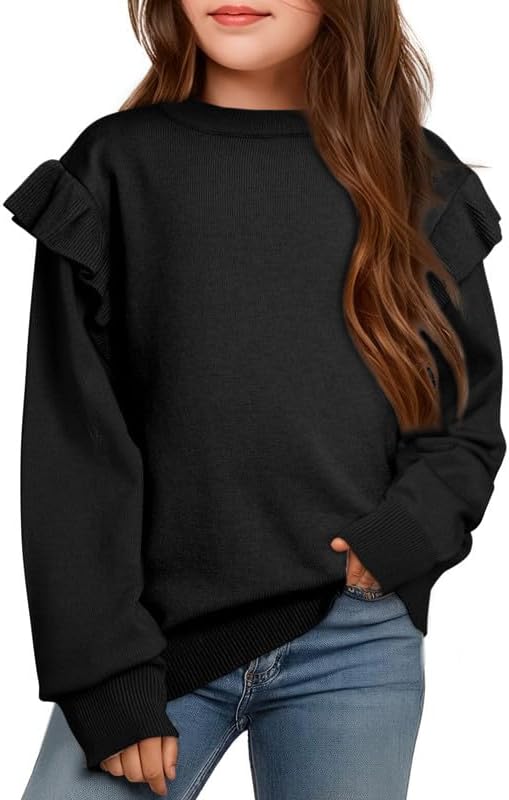 Girls Sweaters Cute Crewneck Ruffle Long Sleeve Knit Pullover Sweater Tops 6-15 Years