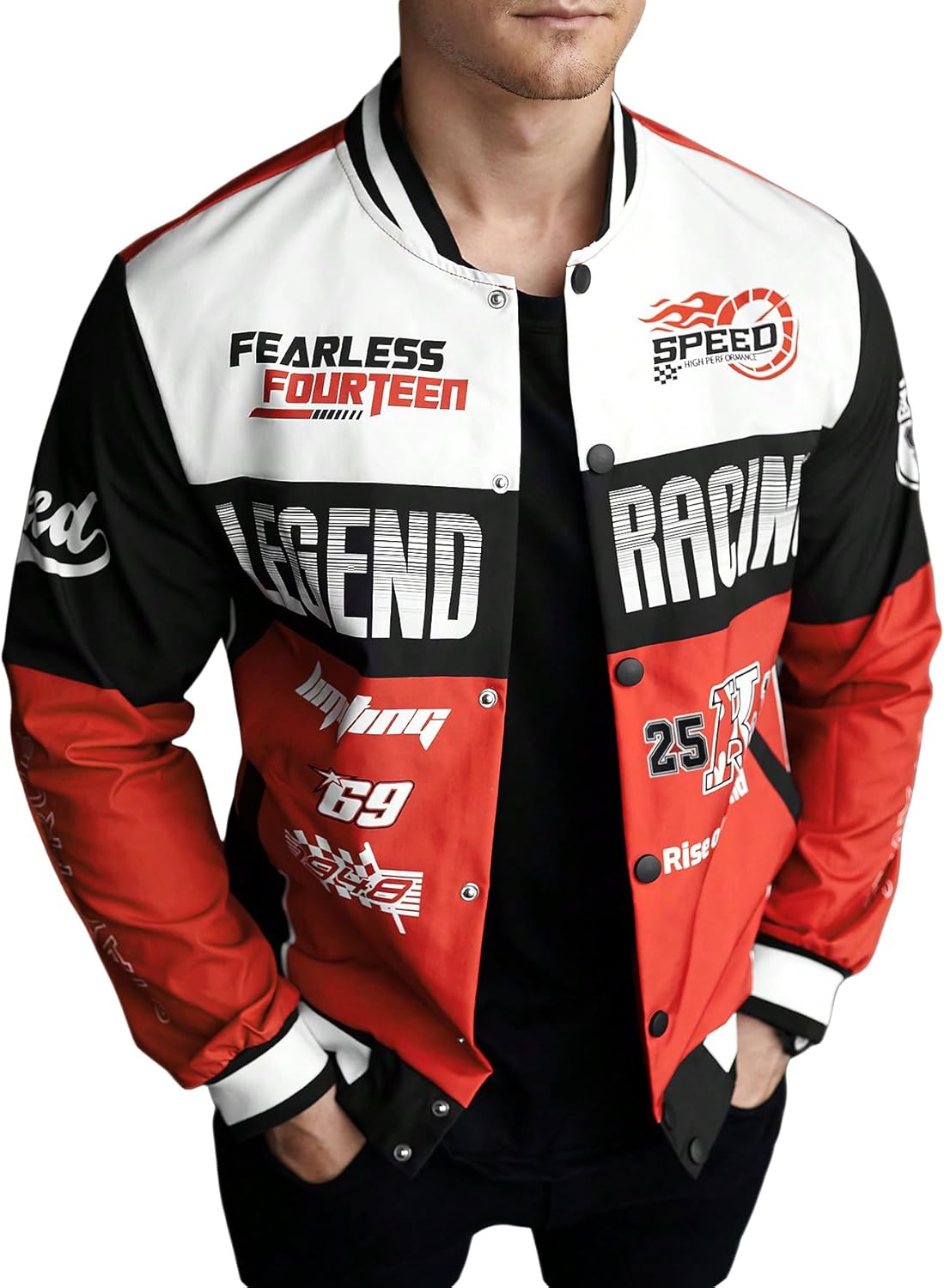 SOLY HUX Mens Racing Jacket Button Down Graphic Varsity Jackets Car Racing Jacket Men Motorcycle Outerwear Streetwear