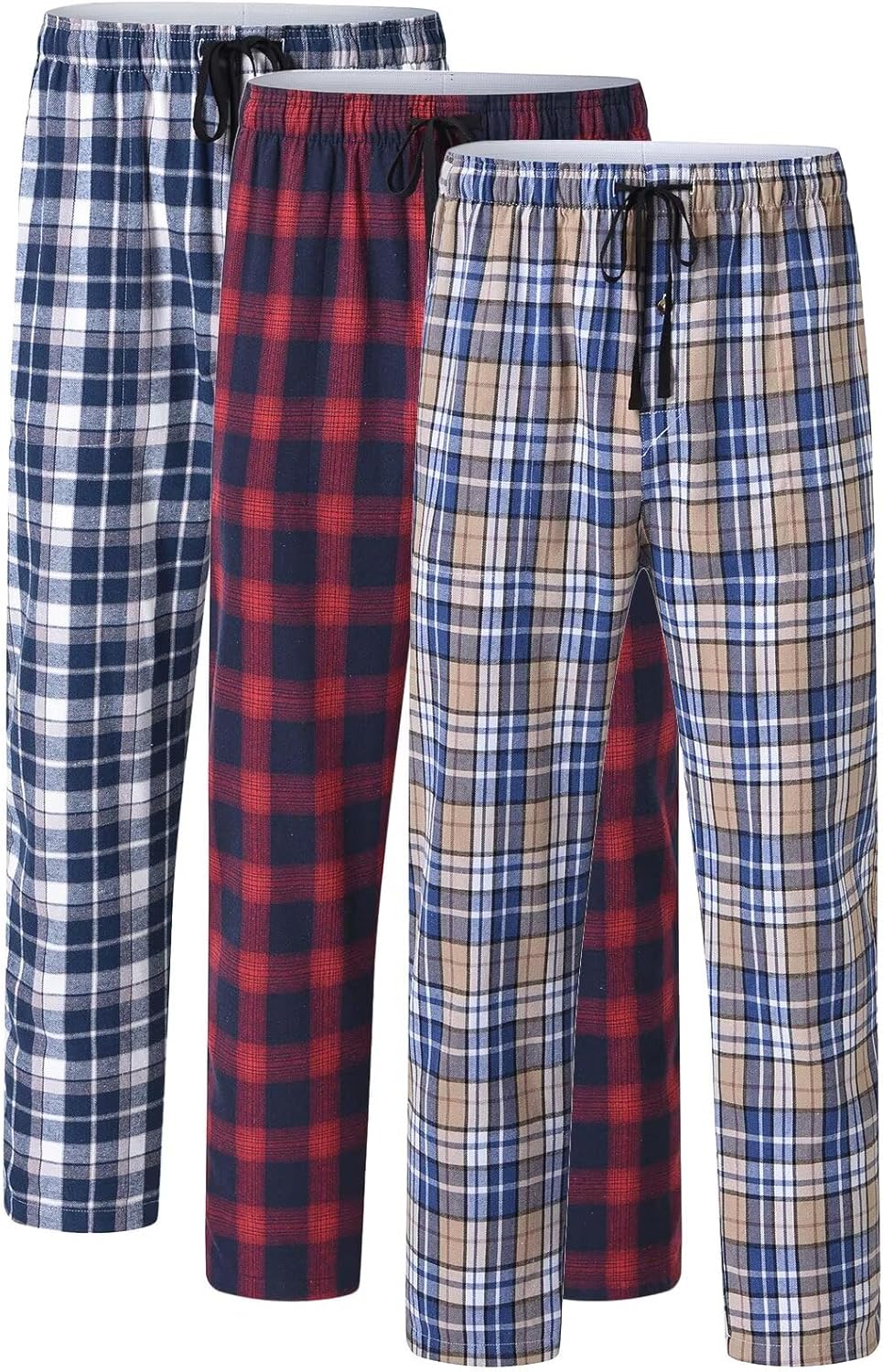 yuyangdpb Men's 3-Pack Pajama Pants Cotton Plaid Pjs Bottoms Sleep Lounge Pant Button Open Fly with Pockets