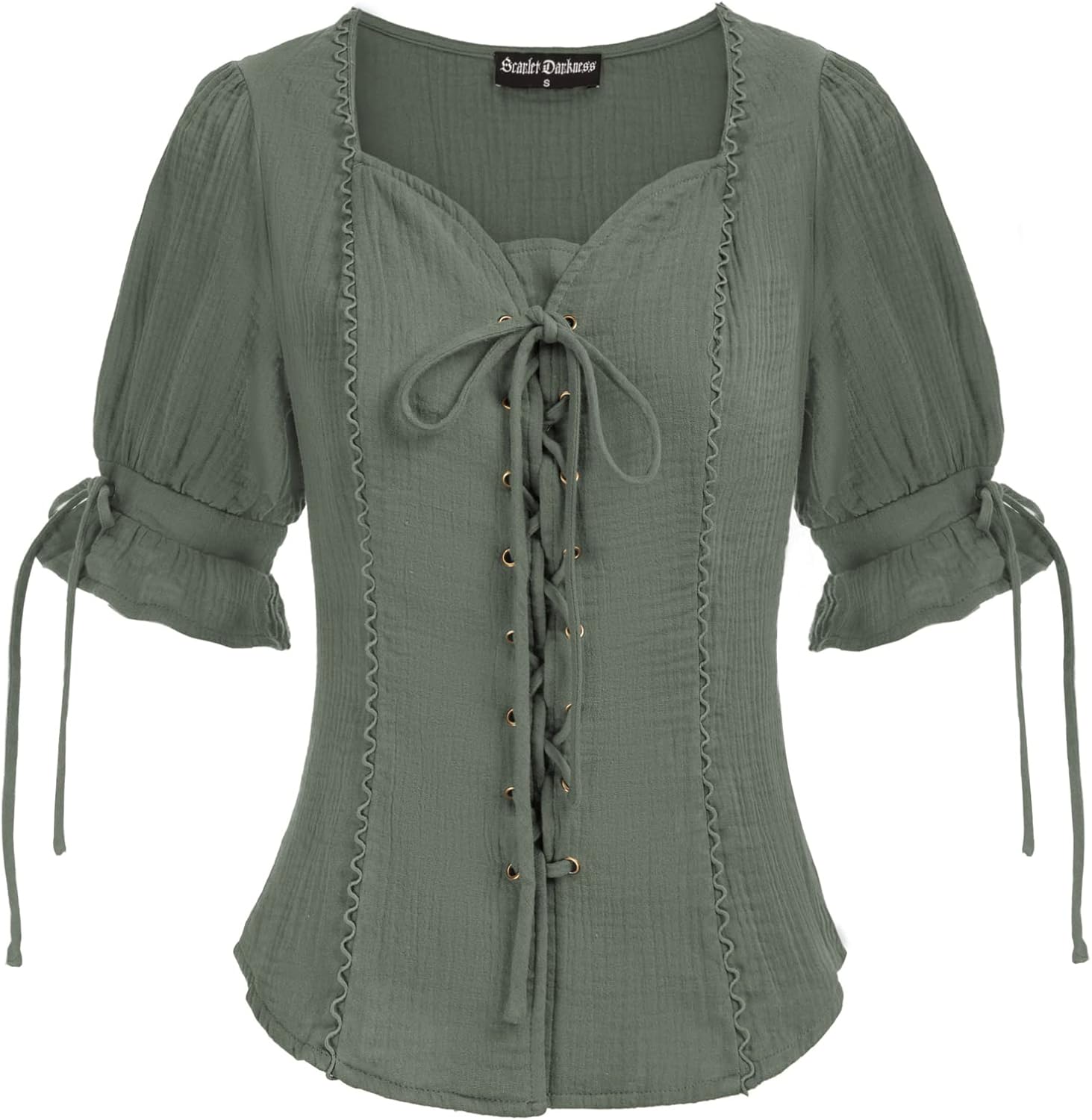 Scarlet Darkness Renaissance Shirts for Women Summer Plus Size Lace-up Tops
