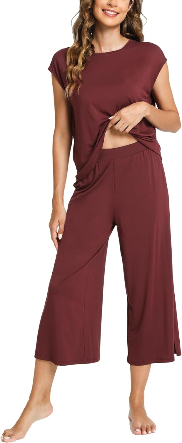 GYS Bamboo Viscose Pajamas for Women Set, 2 Piece Soft Capri Pants Cap Sleeve Top Lounge Set, Comfy Loungewear Sleepwear PJs